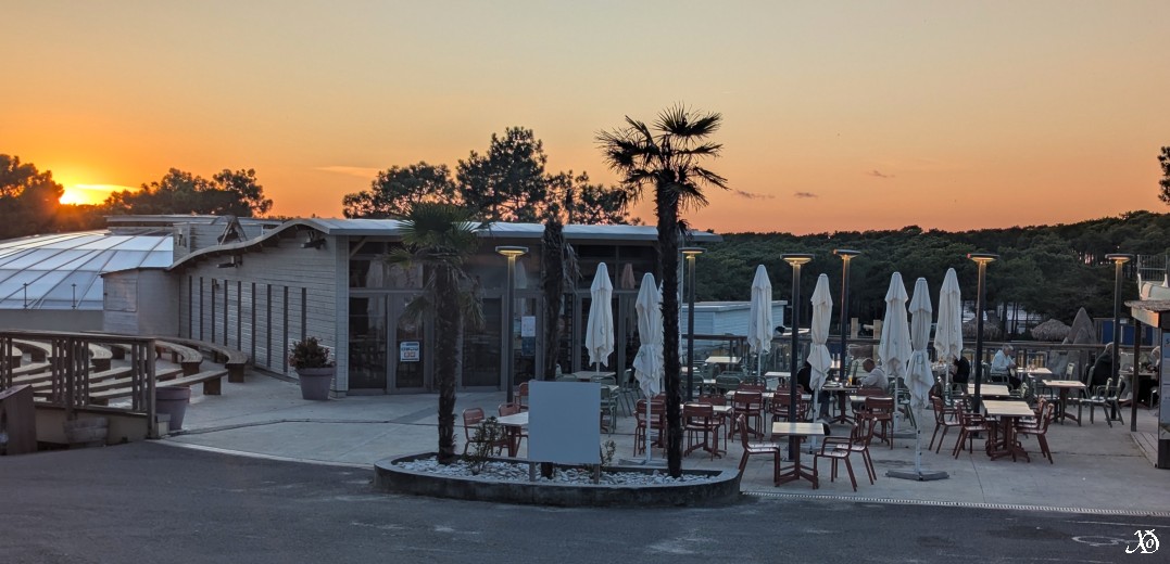 Balade dans les landes : pins, sable et arbousiers puis le long de la plage : surfeurs