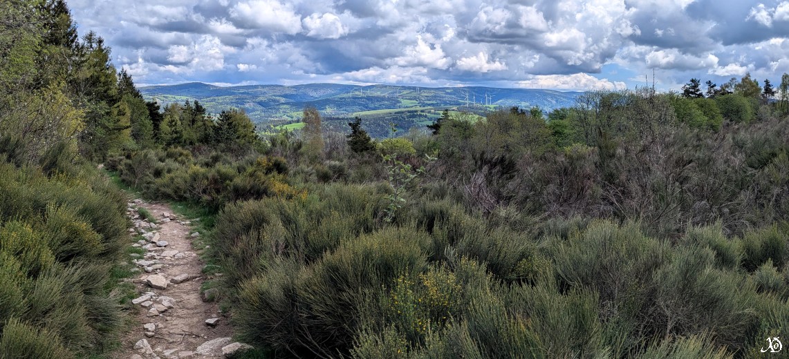 Stevenson- Luc: Etape de Pradelles a Luc sur le chemin de Stevenson Depart dans le brouillard, descente a Langogne, longue remontee pour la descente finale sur Luc avec un peu de pluie.